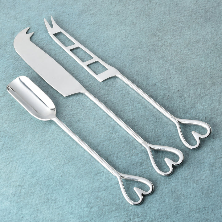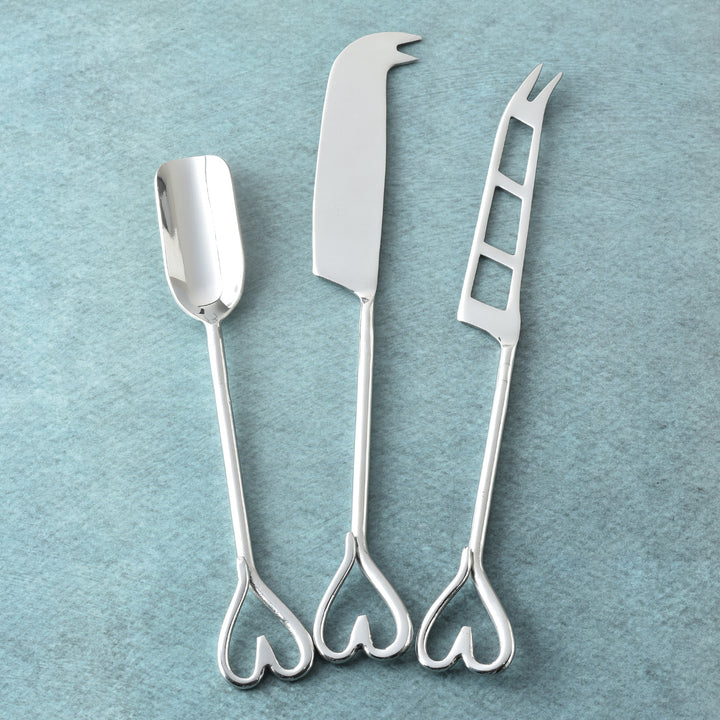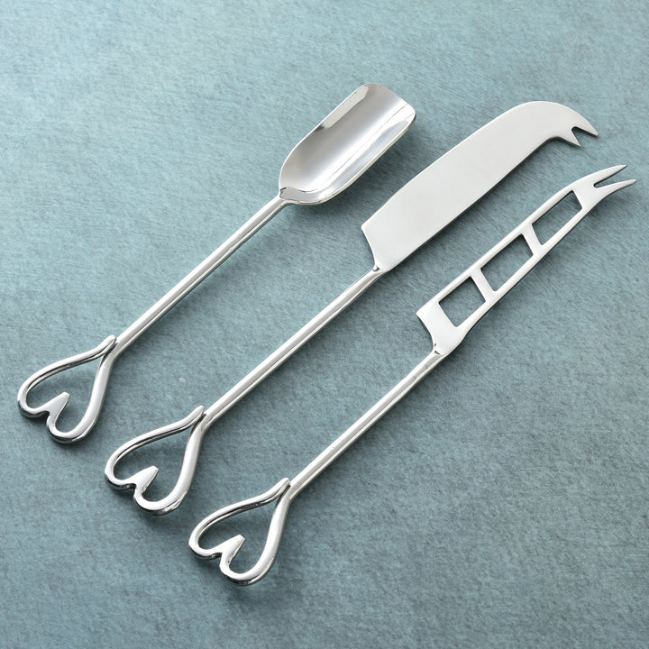 The Amora Cheese Knife and Scoop Set is crafted to elevate every cheese moment with timeless elegance. Featuring polished handles adorned with delicate open-heart accents, each tool—traditional knife, soft cheese knife, and Stilton scoop—offers precision with beauty. Perfectly balanced in hand, they make entertaining effortless and refined. From creamy spreads to bold textures, every serving becomes a graceful expression of love.
