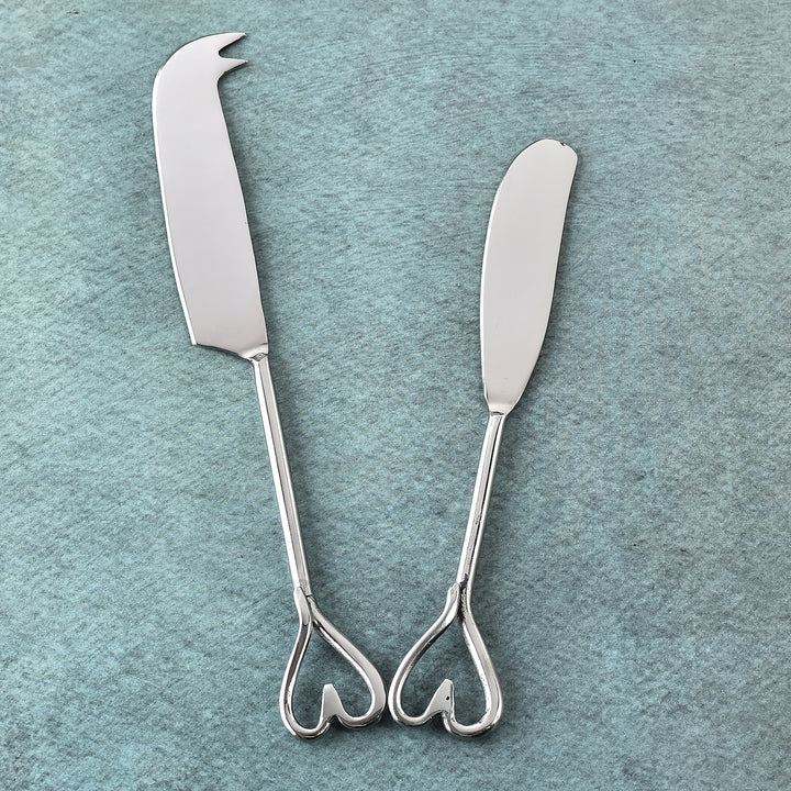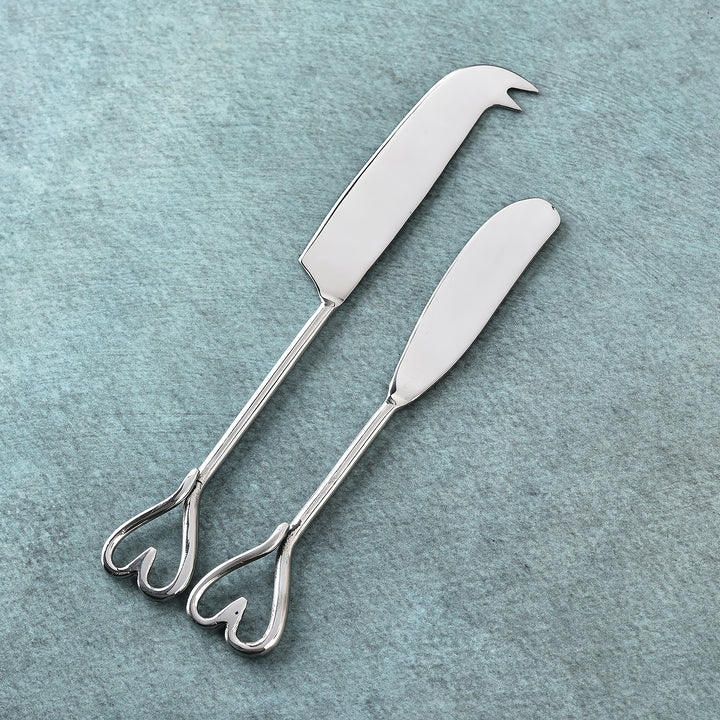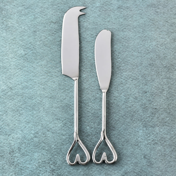 The Amora Traditional Cheese Knife and Butter Spreader Set pairs timeless function with a touch of romance. Each piece features polished handles crowned with an elegant open-heart design, bringing beauty and balance to the table. Crafted for smooth spreading and effortless slicing, they make every serving moment graceful. Perfect for entertaining or intimate gatherings, this set turns simple indulgences into cherished rituals.