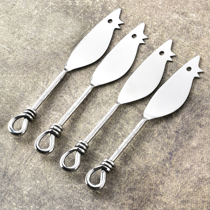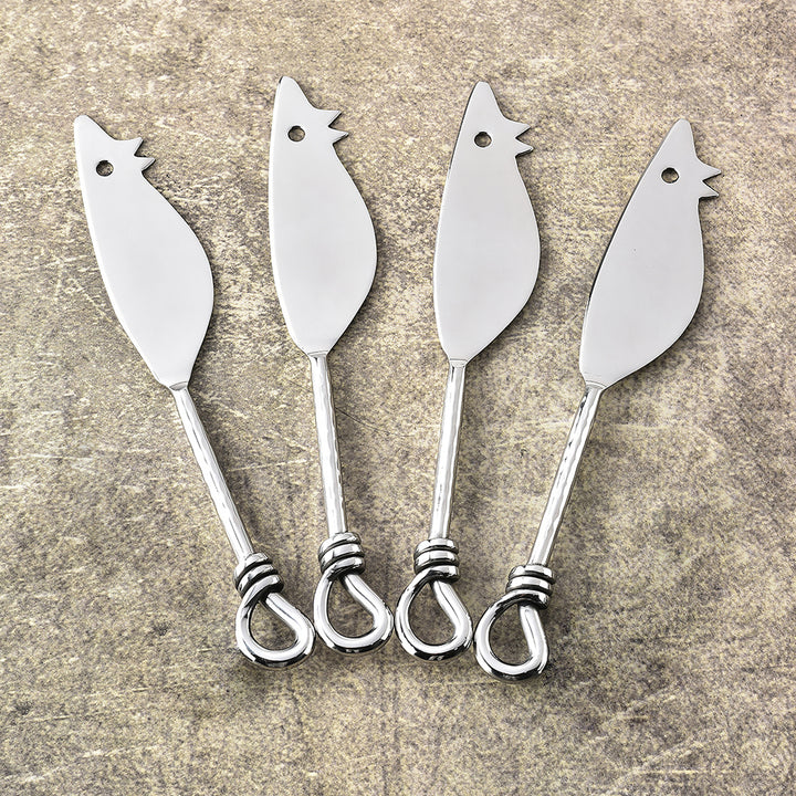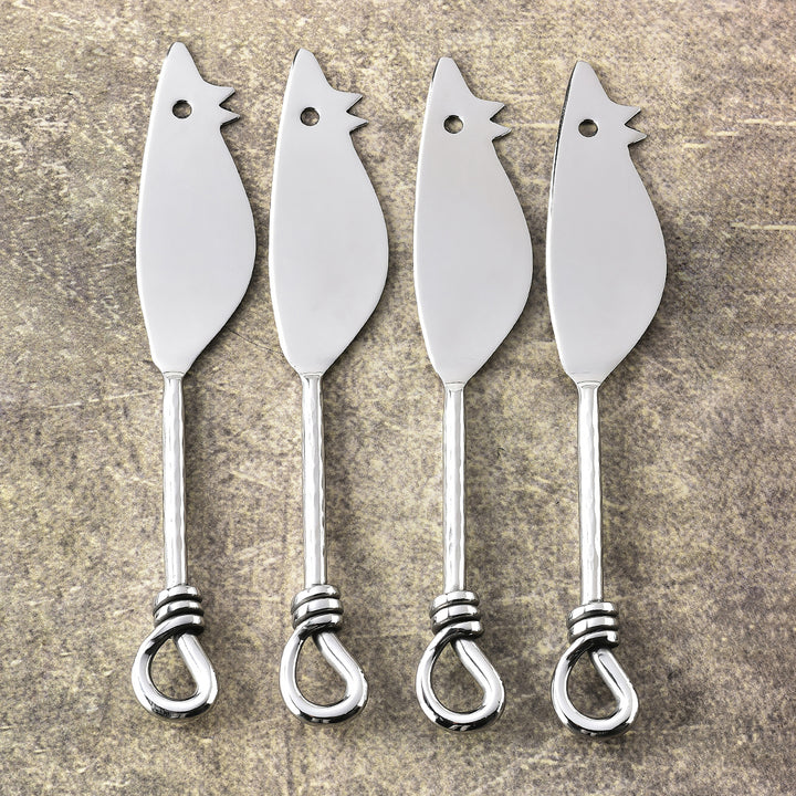 Gilded Helical Hammered RatoncitoCheese Knife 4 Pcs. Set