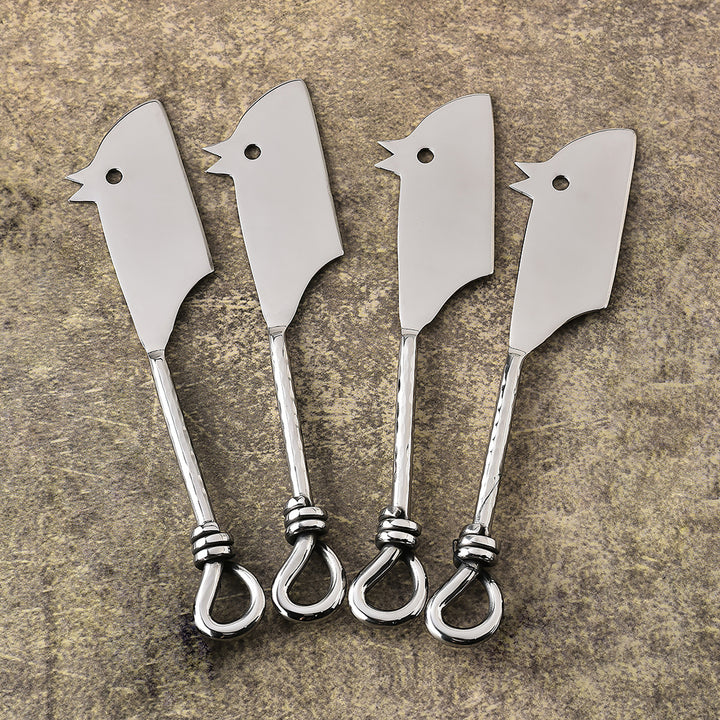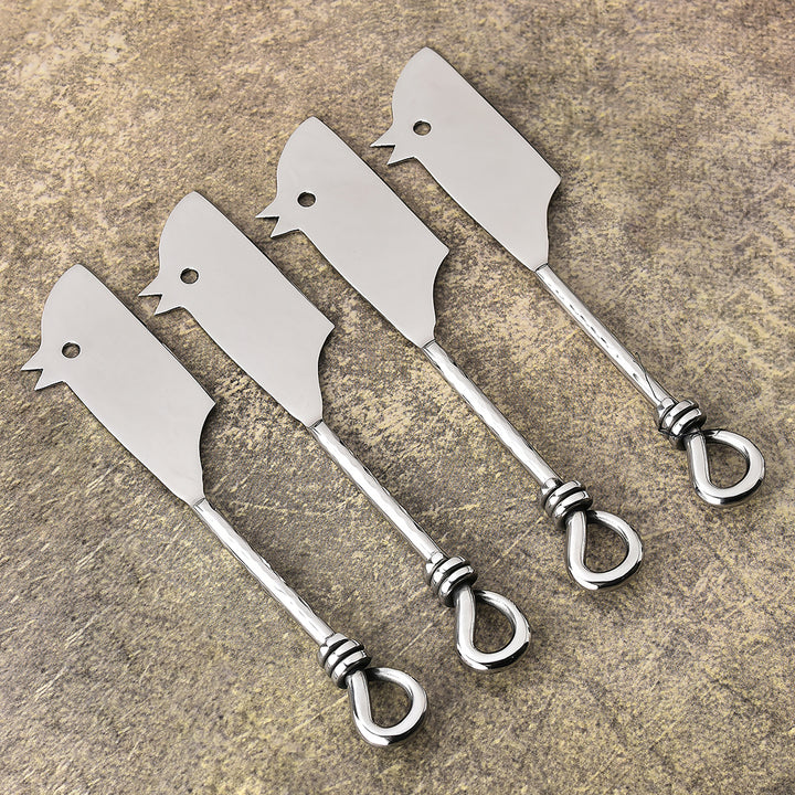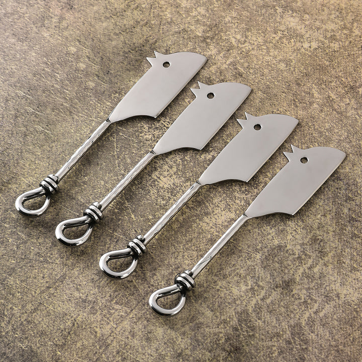 Gilded Helical Hammered Rectangular RatoncitoCheese Knife 4 Pcs. Set