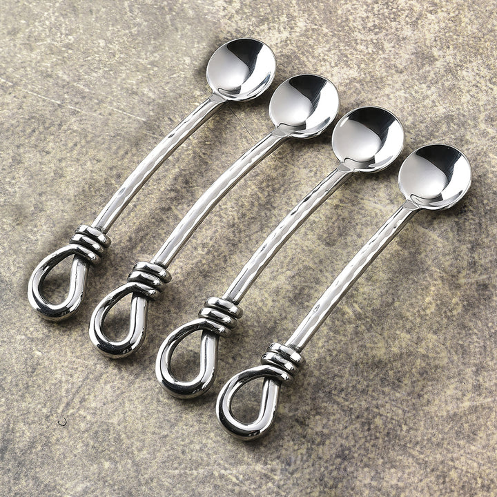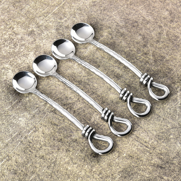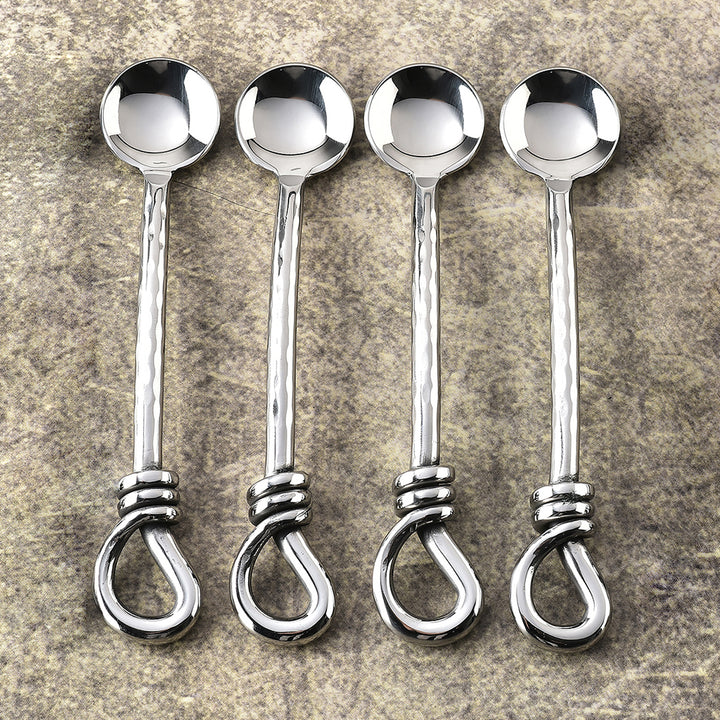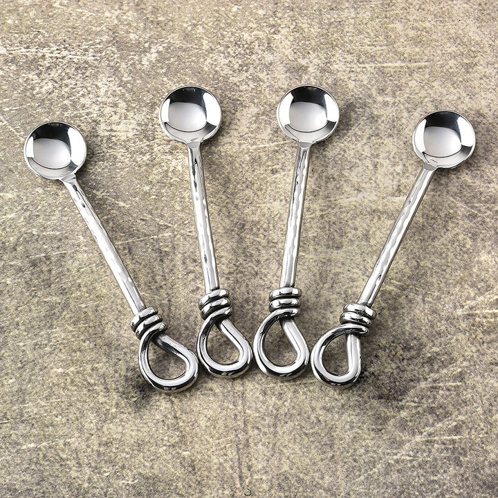The Gilded Helical Hammered Salt Spoon Set distills elegance into ritual, its sculptural knot resting with poised weight while the hammered stem scatters light like fine crystal. Scaled for delicate seasoning, each bowl offers precise pinches, honoring the storied salt cellar with modern grace. A dialogue of texture and symbolism, the helical motif entwines heritage with contemporary craft, creating an heirloom for intimate tables and grand fêtes alike.