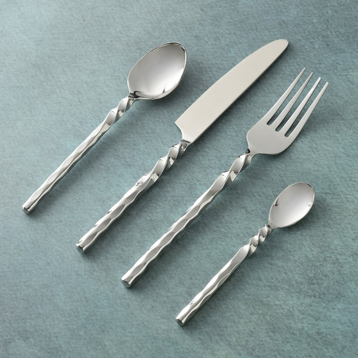 Elevate your dining experience with this exquisite 7-piece place setting, where artistry meets function at every course. Featuring finely balanced cutlery with sculptural spiral handles, each piece is designed for comfort, elegance, and effortless grip. The polished metal twists flow gracefully, bringing a touch of sophistication and whimsy to the table. More than utensils, these are conversation starters—blending ergonomic ease with sculptural beauty to transform everyday meals into refined, memorable gatherings.