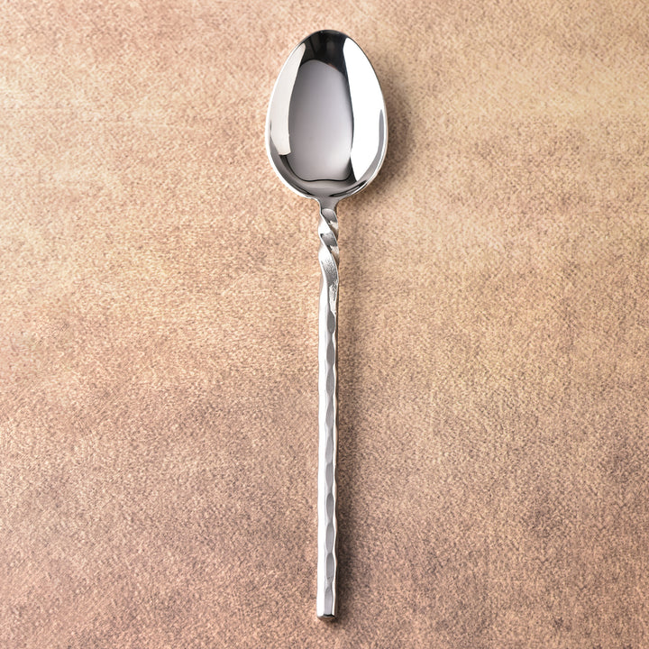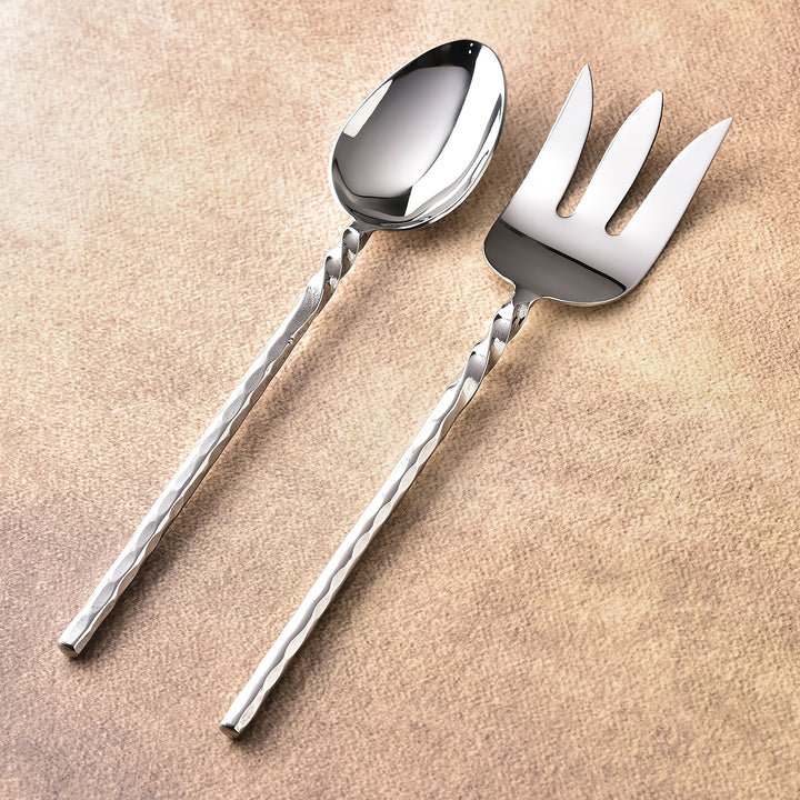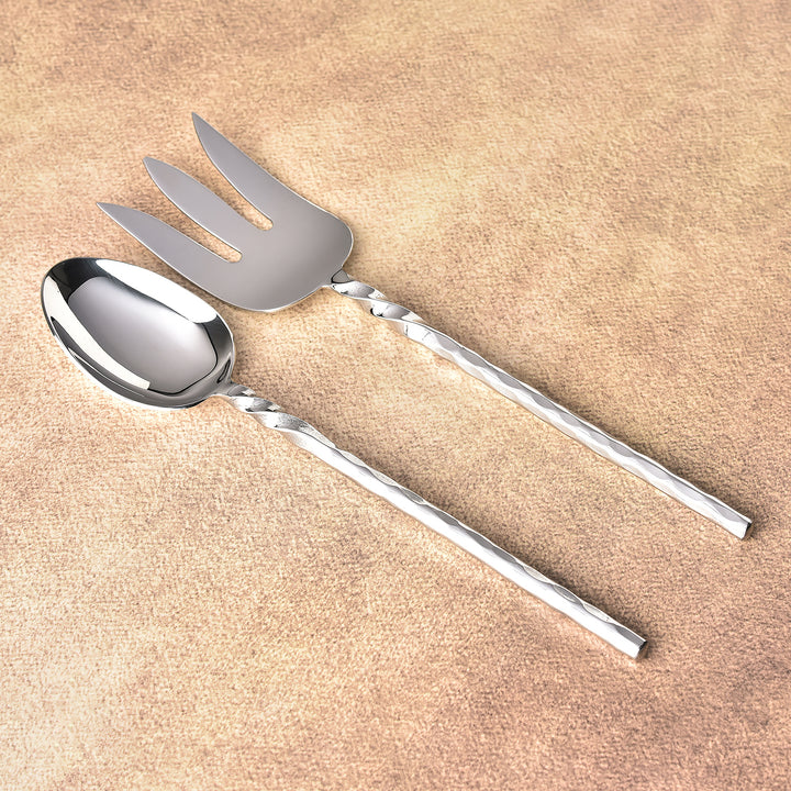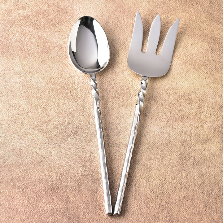 The Helix Hammered Salad Server Set brings a sculptural elegance to the simplest of gatherings. With handles that twist into graceful, hammered spirals, each piece catches the light like confetti, turning every serve into a moment of celebration. The ergonomic design feels balanced and confident in hand, making tossing and serving greens effortless yet refined. More than utensils, these servers are timeless centerpieces—blending artistry, function, and a touch of playful sparkle to elevate everyday dining into occasions worth savoring.