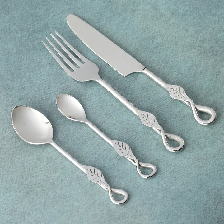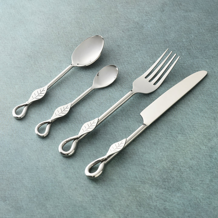 - Each 4-piece cutlery set includes one piece each of Dinner Knife, Dinner Fork, Dinner Spoon and Coffee Spoon.