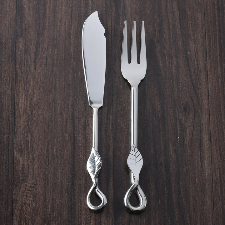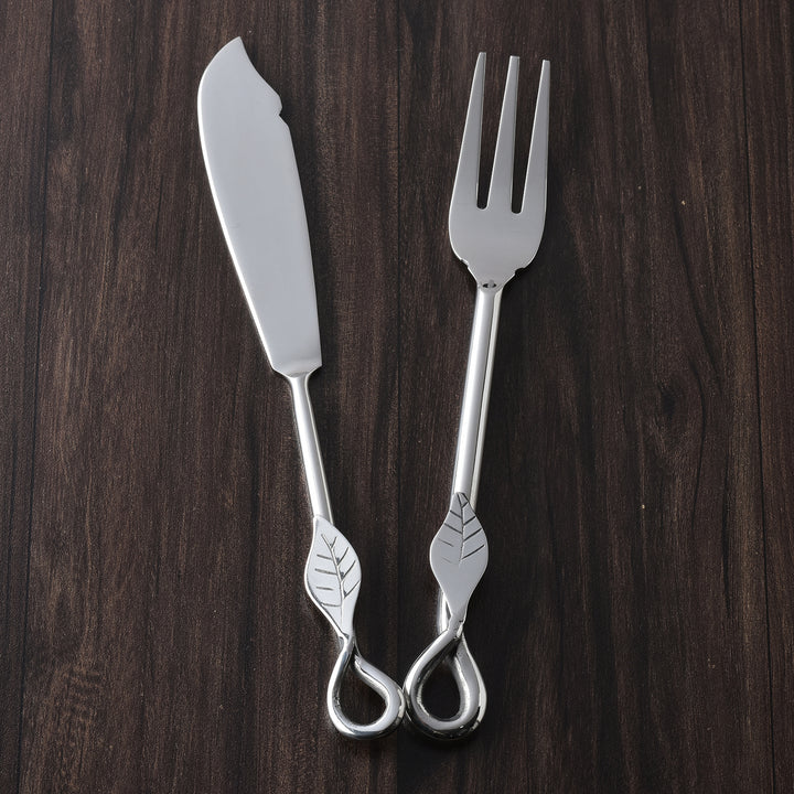 The Laurel Fish Fork and Knife Set captures the poetry of nature in refined form. Polished handles unfurl into delicately veined laurel leaves, offering both beauty and intuitive comfort. Flowing into a graceful teardrop loop, each piece rests with perfect balance, marrying finesse with ease of use. Designed for the delicate art of enjoying fish, this set brings harmony, elegance, and timeless grace to every dining occasion.