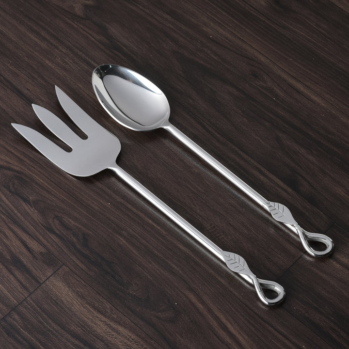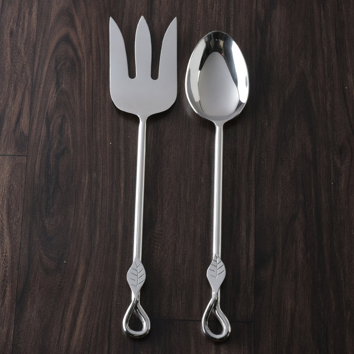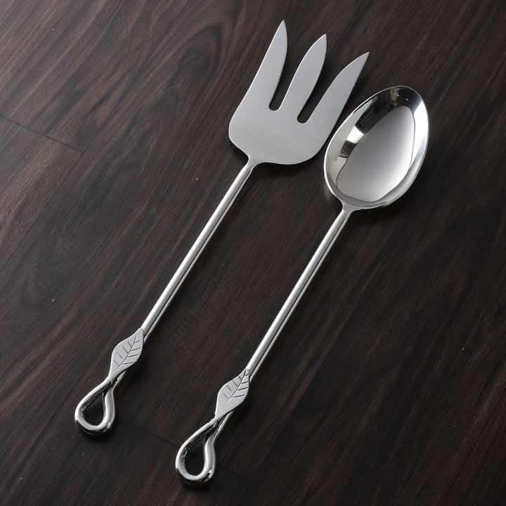 The Laurel Salad Serving Set captures the poetry of nature in every curve. Graceful polished stems unfurl into delicately veined laurel leaves, offering a natural flow and effortless comfort in hand. Balanced by a refined teardrop loop, each piece feels both organic and timeless. Designed for beauty and function, this set elevates everyday salads into moments of elegance, turning simple sharing into a celebration of nature’s grace.
