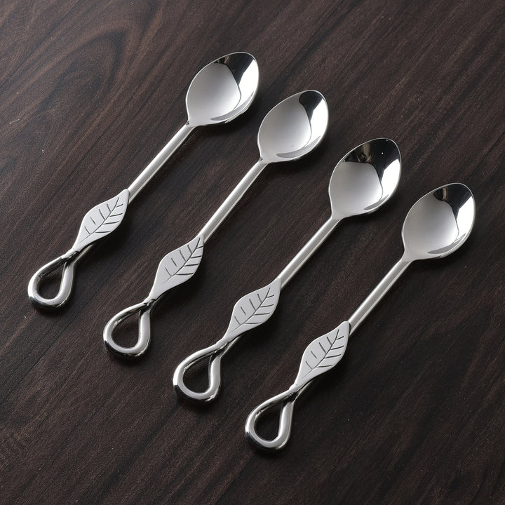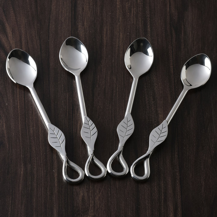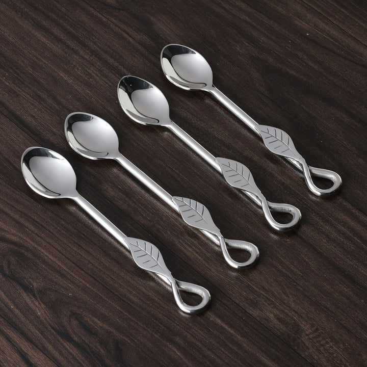 - Each 4-piece tea spoon set includes four pieces of Tea / Desert Spoon.