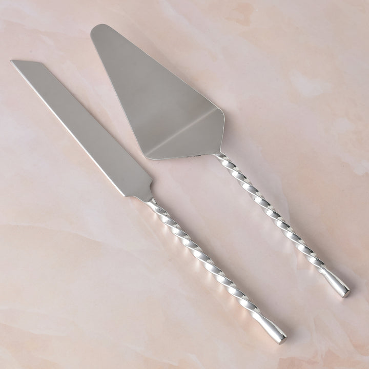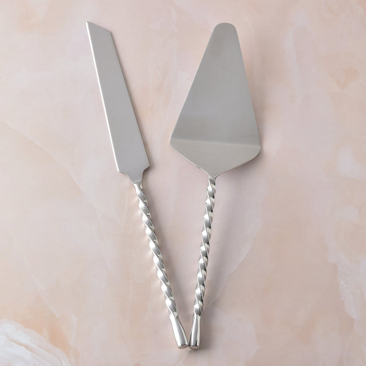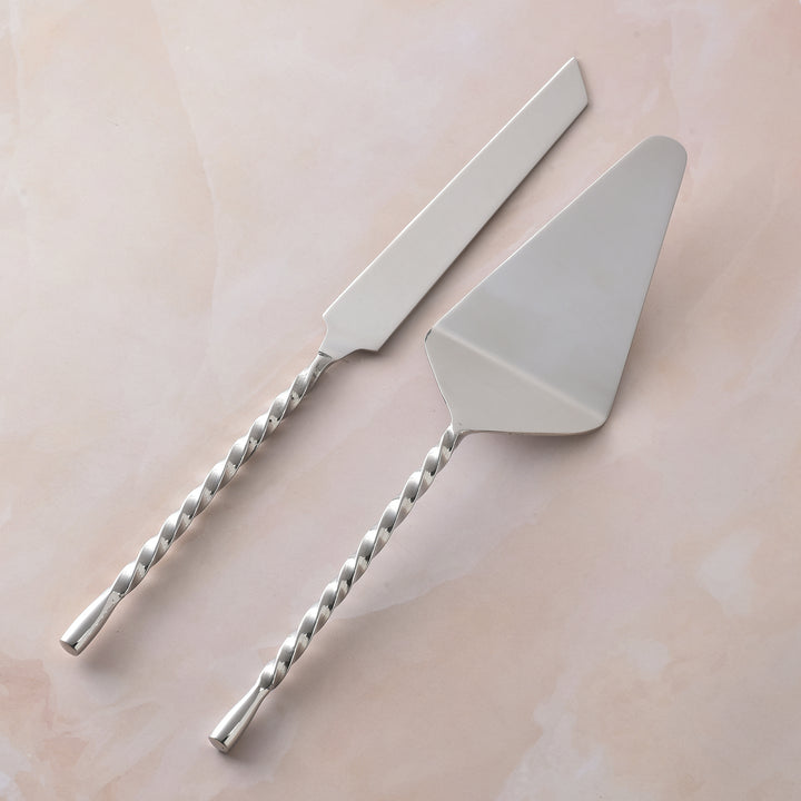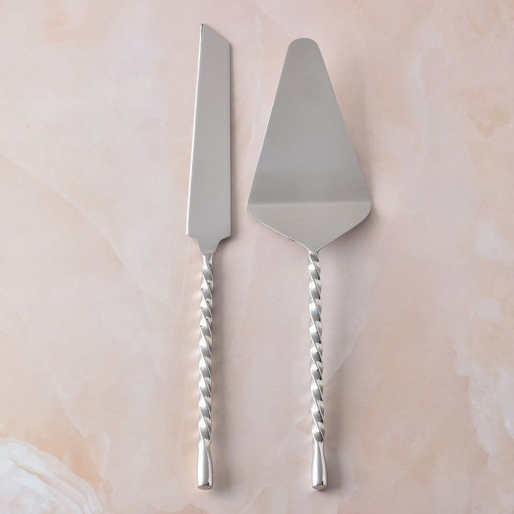 The Spiral Drop Cake Server Set: This exquisite set elevates dessert presentation to an artful ritual, featuring a polished helix handle that enchants the senses. Its sculptural spiral design offers a confident, comfortable grip, turning every slice into a graceful performance. With a whimsical flourish at the tip, it adds charm and sophistication to your table, making every serving a celebration of elegance and refined indulgence for the discerning host.