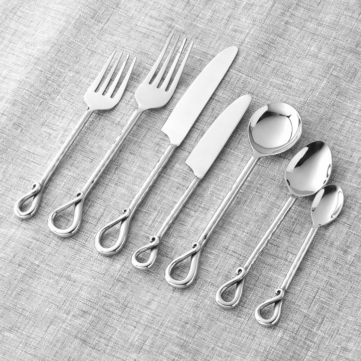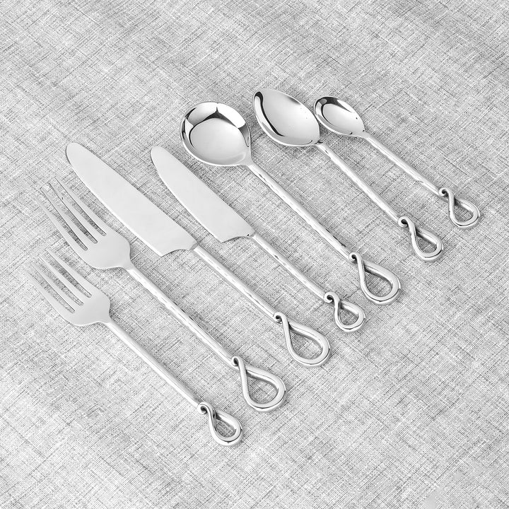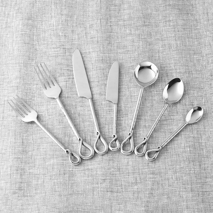 The Twirl Hammered 7 PC Cutlery Set captivates with its kinetic shimmer, each hammered handle reflecting light like sunlit ripples. Crafted from hand-hammered 18/8 stainless steel, the continuous ribbon flows seamlessly into a graceful, calligraphic twirl—the ergonomic and aesthetic soul of the set. Poised perfectly in hand, it embraces candlelight’s dance, elevating every course with refined artistry. More than cutlery, it’s a luminous statement that transforms dining into an enchanting sensory ritual.