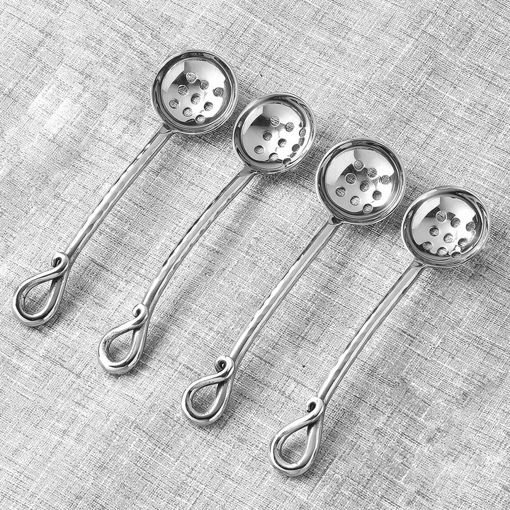 The Twirl Hammered Olive Spoon Set turns serving into a luminous ritual, with perforated bowls that let brine and oil cascade away for impeccably clean olives and antipasti service. Each handle flows as a ribbon of hand‑hammered 18/8 stainless steel, concluding in the signature double loop for poised, ergonomic balance that catches candlelight in motion. Artful yet purposeful, the curated set elevates grazing boards and cocktail hours, refining every pour, lift, and plate with radiant precision.