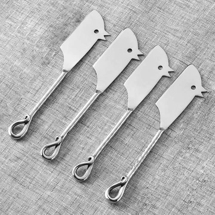 Twirl Hammered Rectangular RatoncitoCheese Knife 4 Pcs. Set
