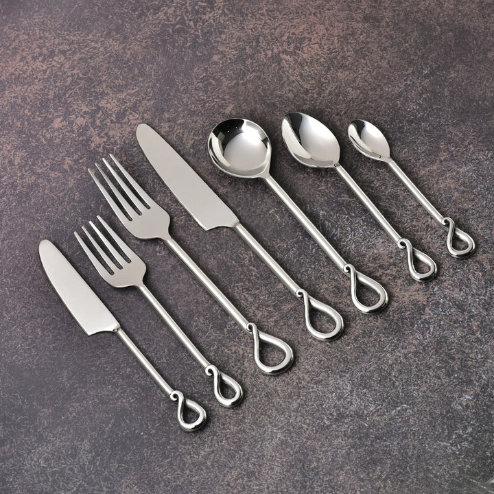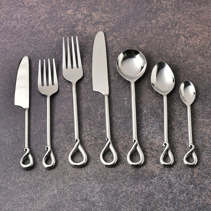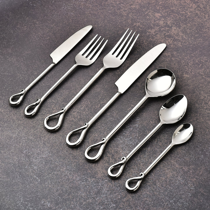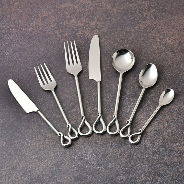 The Twirl Polished 7 PC Cutlery Set transforms dining into a symphony of light and grace. Each piece flows like a continuous ribbon, culminating in a calligraphic double loop that is both a visual delight and ergonomic marvel. This polished embrace balances perfectly in hand, reflecting candlelight’s dance. Thoughtfully curated for every course, the set elevates the table from mere utility to the heart of a luxurious dining experience, inspiring elegance with every touch.