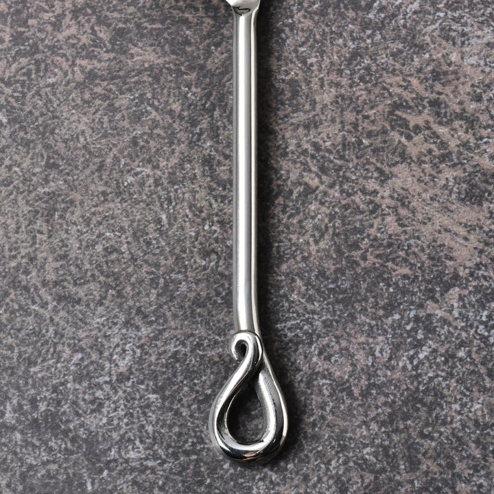 The Twirl Soft Cheese Knife Set enchants with its flowing ribbon-like handles, culminating in a sophisticated calligraphic twirl. Each knife is meticulously balanced for a poised, comfortable grip, marrying ergonomic brilliance with polished beauty. Designed specifically for delicate, creamy cheeses, it offers precision and ease with every slice. This refined set transforms cheese serving into an artful experience, adding a luxurious touch that elevates both tabletop aesthetics and the enjoyment of indulgent gatherings.