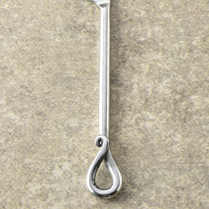 The Twirl Polished Traditional and Soft Cheese Knife Set marries artistry with purpose. Each knife's handle flows in a continuous ribbon, ending in an elegant double loop that ensures a balanced, comfortable grip. The mirror-polished finish captures light, adding a touch of sophistication to every cut. Designed to perfectly serve traditional and soft cheeses, this curated set turns a practical tool into a centerpiece, elevating the cheese course into a refined, luxurious experience for every discerning palate.