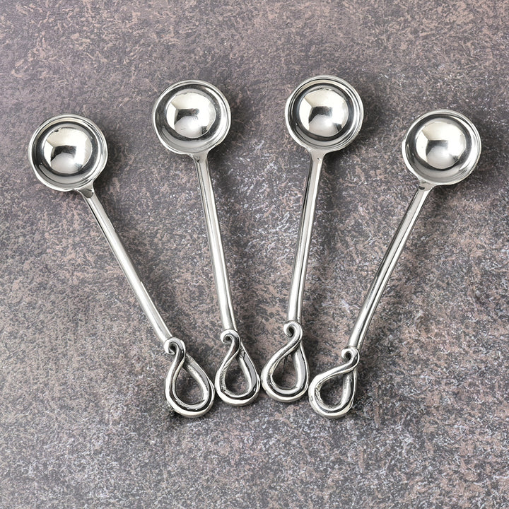 The Twirl Polished Sugar Spoon Set turns every sweet moment into a refined ritual. Each spoon features a flowing ribbon-like handle culminating in a graceful double loop, marrying artistry with ergonomic perfection. The mirror-polished finish captures light, adding sparkle to your table. Crafted to balance beautifully in hand, this set elevates the simple act of sweetening into a luxurious experience, making each pour an elegant gesture and enhancing the ambiance of your finest gatherings.
