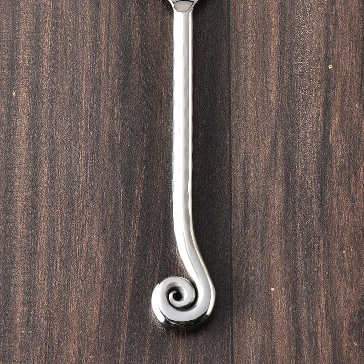 Sculpted for sweet moments, the Whorl Hammered Cake Fork Set pairs minimalist poise with tactile artistry. Slender tines meet mirror-polished handles that shimmer with a hammered texture, adding light-play and a confident, graceful grip. Each elongated handle resolves in a signature coiled whorl—a quiet flourish that balances the piece and reads like a calligraphic note of refinement. More than dessert forks, these are sculptural companions that elevate every slice, serve, and celebration with enduring elegance.