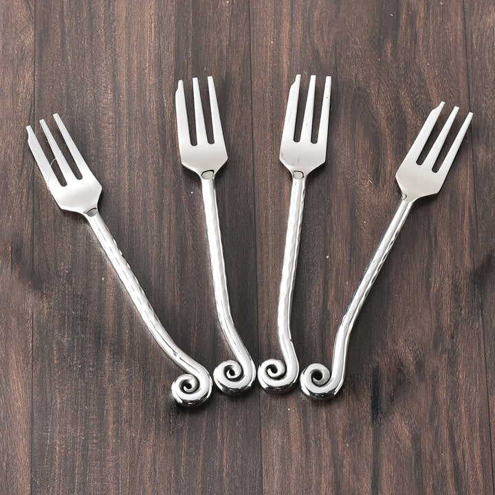 Whorl Hammered Cake Fork 4 Pcs. Set