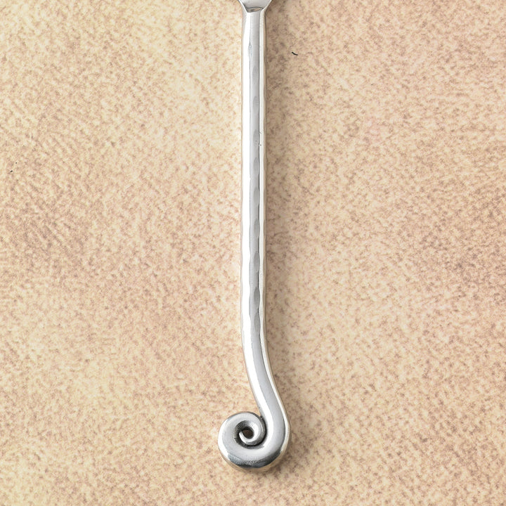 Elegantly engineered for cheese rituals, the Whorl Hammered set presents a Parmesan knife, cheese plane, and fork with mirror-sleek blades and hand-hammered handles for confident, sculptural grip. The Parmesan knife breaks aged wheels into crystalline shards with poised control, honoring classic grana forms. The plane slices ultra-thin ribbons with crisp finesse, while the fork secures and serves with refined balance—each piece culminating in a calligraphic whorl, a quiet flourish of craftsmanship.
