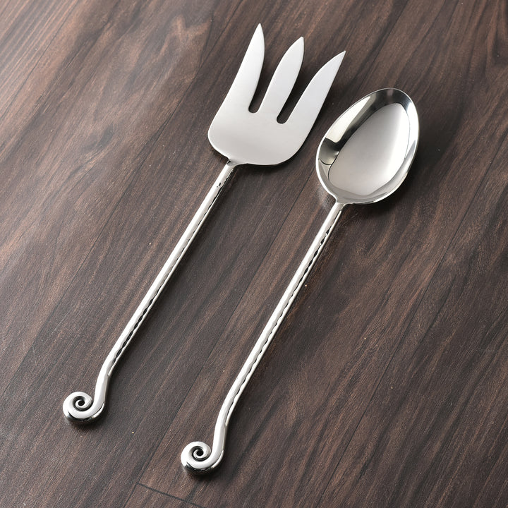 - Each 2-piece salad server set includes one piece each of Salad Spoon and Salad Turner Fork.