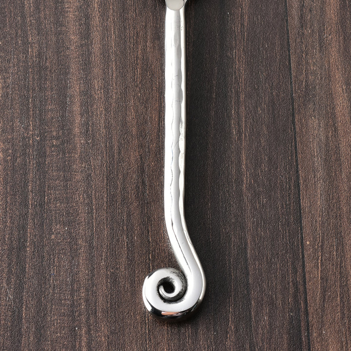 Whorl Hammered Dessert Spoon Set: a study in refined poise, where mirror-bright curves meet artisanal texture. Each slender handle is meticulously hammered to catch the light while resisting fingerprints, delivering a confident, tactile grip for elegant plating and sweet finales. The signature coiled whorl adds a balanced counterweight—an understated flourish that feels sculptural in the hand and luminous at table. Crafted for durability and grace, these spoons elevate every course from sorbet to tiramisu.