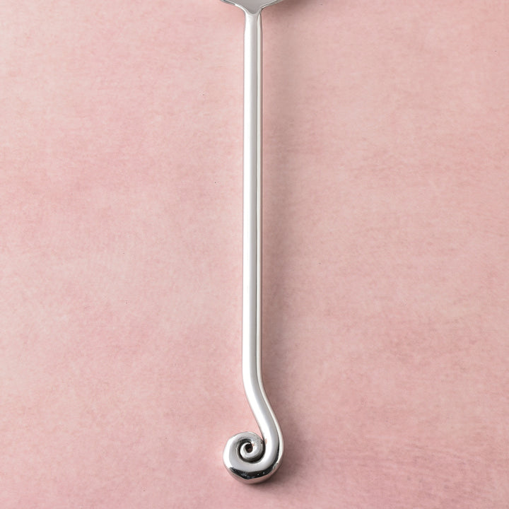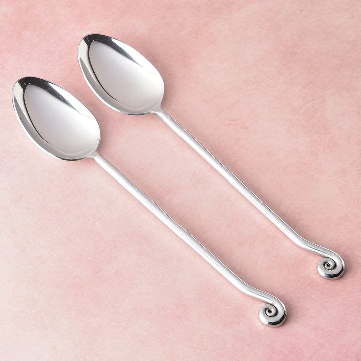 The Whorl Polished Serving Spoons 2 Pcs. Set pairs a slender, ergonomic silhouette with mirror-like lustre that catches and reflects light with refined brilliance. Each elongated handle culminates in the signature coiled whorl, a poised counterweight that balances the hand with effortless control. Crafted with meticulous polishing for a flawlessly smooth finish, these spoons elevate daily service into a quiet ritual of elegance and intention.