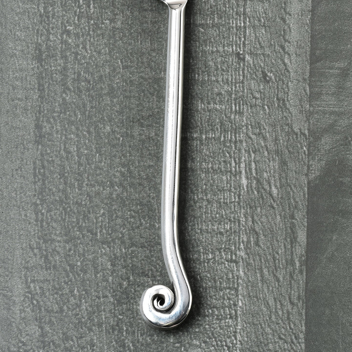 The Whorl Polished Soft Cheese Knife Set pairs mirror-finished stainless steel with a slender, balanced silhouette for effortless glide through Brie, Camembert, and Gorgonzola. A narrow, holed blade minimizes adhesion, while a forked tip lifts delicate portions with poised precision. The signature coiled whorl anchors the hand with quiet equilibrium, transforming simple service into a refined ritual. For hosts who prize luminous craft and serene control, this set is pure ceremony.